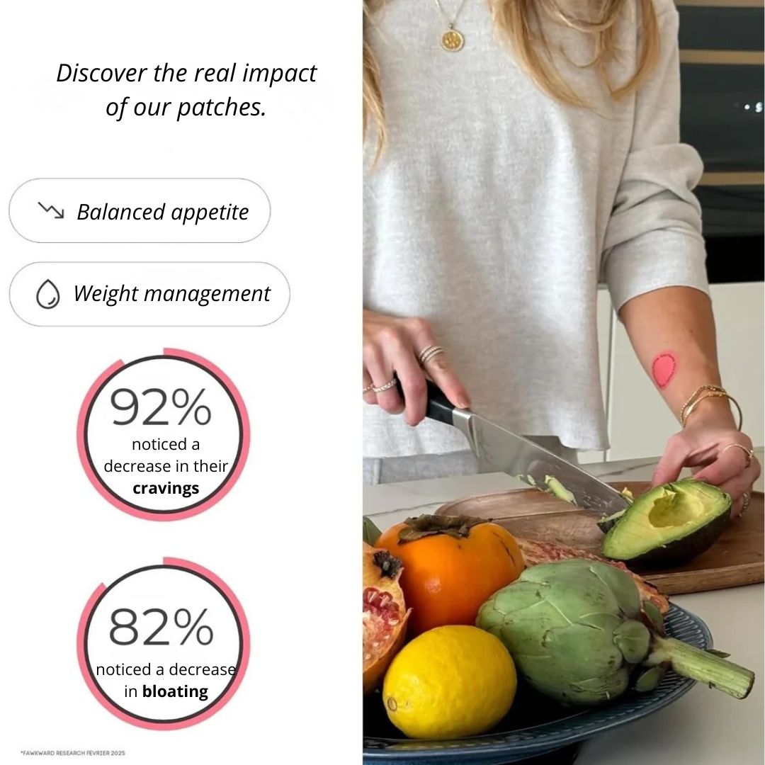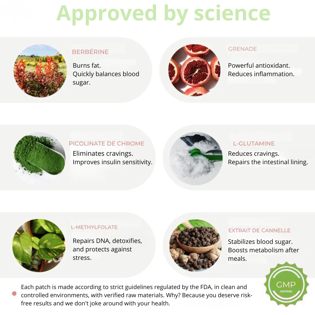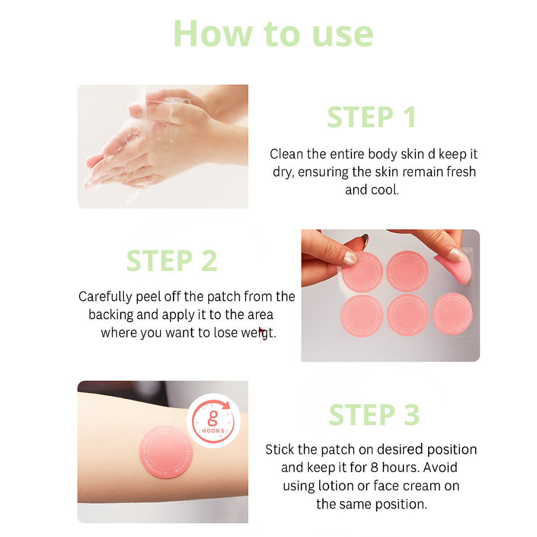 The patch gradually releases natural ingredients through the skin to help regulate appetite, boost metabolism, and promote fat burning.